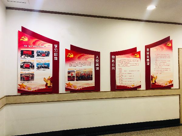 办公区是职工们默默耕耘的地方,也是大家辛劳工作后稍作歇息的落脚点。本次区域设计包含了五个主线板块,分别是“不忘初心 牢记使命”党务墙、上海体育场馆发展史(从1862年上海第一个跑马场建成起至今,共55家体育场馆)、形象标识墙与指引牌、“服务、指导、标准、评估”公告栏、“携手共进、共赢未来”职工爱岗敬业与参加各类学习活动的风采展示墙。