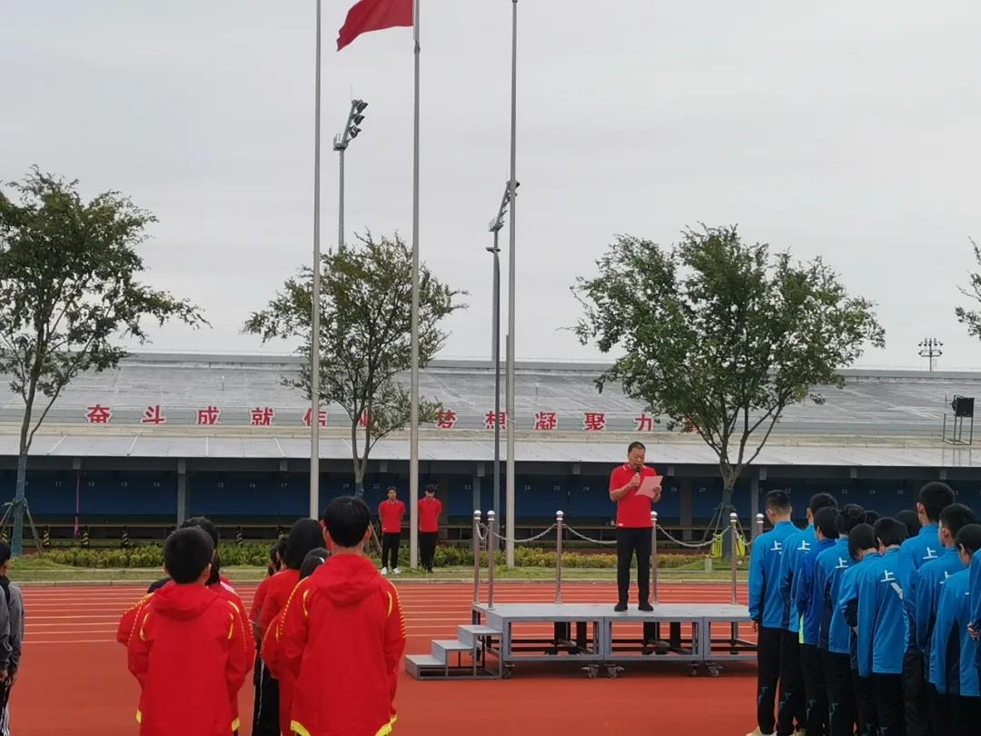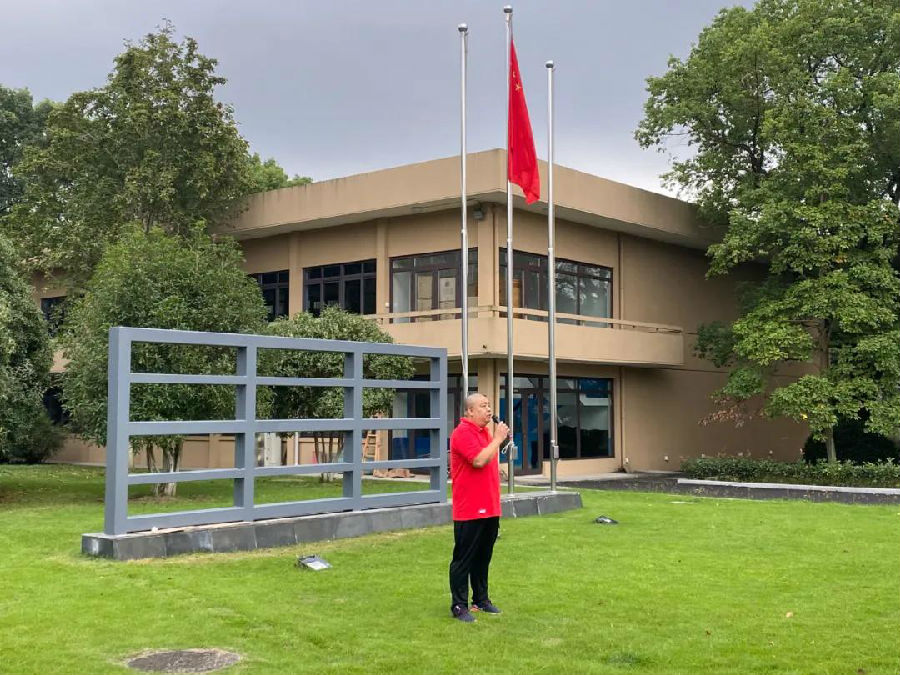 升旗礼毕,游泳运动中心党总支书记王小兵讲话,他勉励大家要发扬爱国主义精神,珍惜来之不易的训练环境和训练氛围,为还有一年不到就要举行的第十四届全运会奋斗每一天。