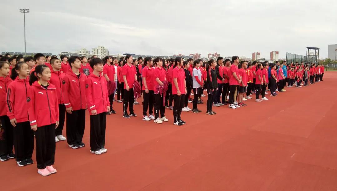 当晨曦的第一缕光铺洒在田径场上,一抹抹身穿红色短袖的身影显得更加挺拔,一个个青涩的面孔显得更加富有朝气,充满活力。7点整,升旗仪式正式开始,随着雄壮国歌的伴奏乐,国旗徐徐升旗,如同那喷薄朝阳的运动员们,昂首挺胸,高亢的国歌声,坚毅的眸光里无不充满着对祖国的热烈。