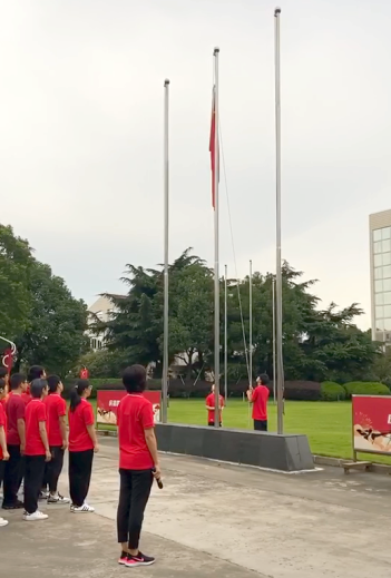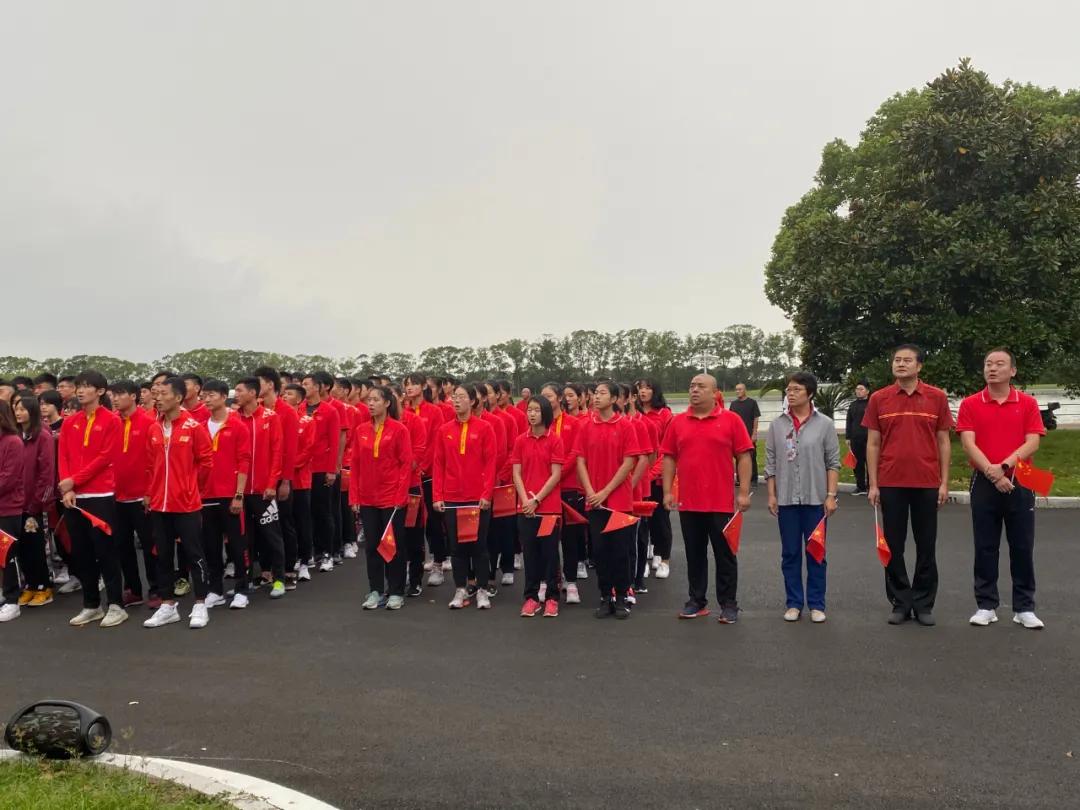 10月3日是运动队国庆假期后归队第一天,清晨,在东方绿舟训练基地的各运动队冒雨进行了升旗仪式。伴随着雄壮的《中华人民共和国国歌》,全体人员肃穆而立,齐唱国歌,注视着鲜艳的五星红旗冉冉升起,民族自豪感在每个人心中油然而生。