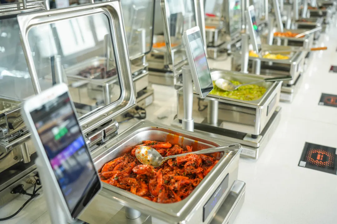 在基地食堂内,专门有一块区域做成了“智慧餐厅”,在这里,运动员可以根据不同的训练量、体重、项目特点等去拿取相应的餐食,机器上会显示出每餐摄入的热量,方便为运动员的体重管理。“比如说体操队,他们是要控制体重的,在智慧餐厅区就可以选低脂、低热量的餐食;平时要进行大力量训练的,需要更多肉类和蛋白摄入,也可以选择相应的餐食。”梁力说,“按照不同的季节,我们也会制定不同的食谱,然后每个星期都会轮换,一定要让运动员吃好。”