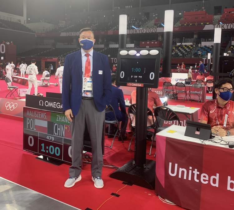 2010年前后开始转型现代五项国际级裁判的钱震华,这次以奥运会现代五项国际技术官员的身份,执裁了东京奥运会的现代五项比赛。
